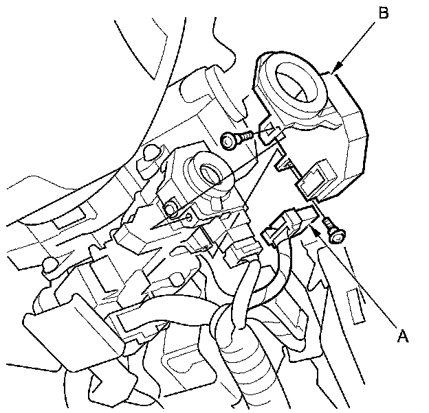 3. Disconnect the 7P connector (A) from the immobilizer-keyless control unit (B).
