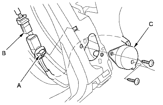 2. Remove the clip (A), and disconnect the buzzer 2P connector (B).