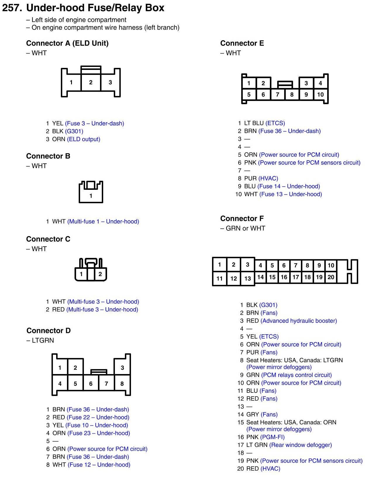 Under-hood Fuse/Relay Box Connector View