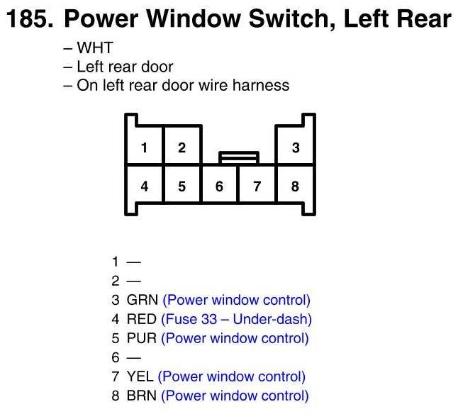 Power Window Switch, Left Rear Connector View