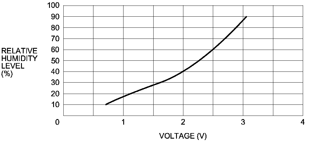 The resistance of the humidity sensor changes by the adsorption and the evaporation of moisture. The resistance change of the humidity sensor changes the output voltage.