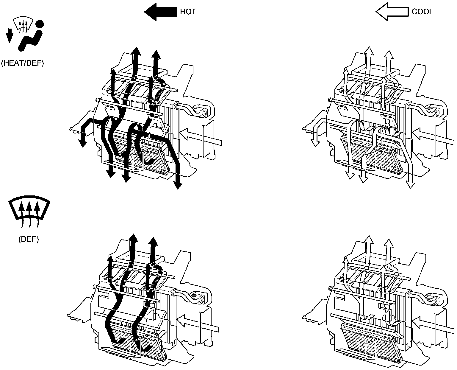 The air conditioning (A/C) system removes heat from the passenger compartment by transferring heat from the ambient air to the evaporator. The A/C system refrigerant expands in the evaporator, and the evaporator becomes very cold and absorbs the heat from the ambient air. The blower fan pushes air across the evaporator where the heat is absorbed, and then it blows the cool air into the passenger compartment.