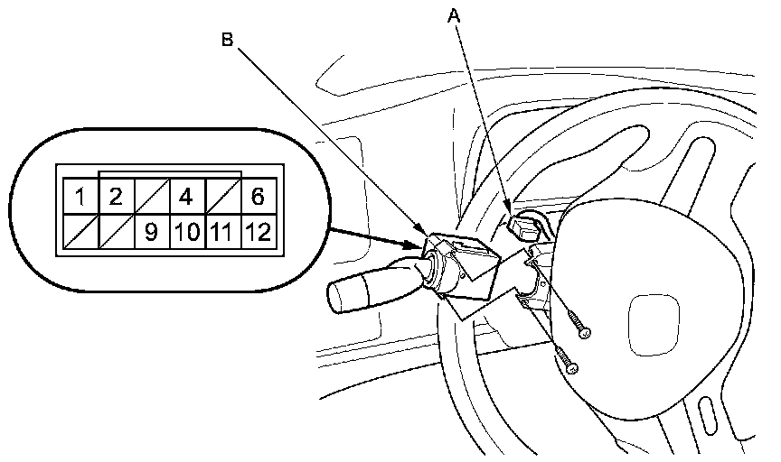 2. Disconnect the 12P connector (A) from the combination light switch (B).