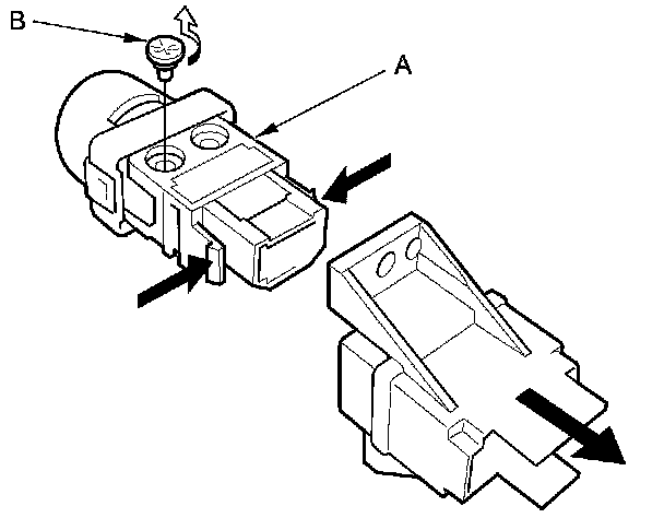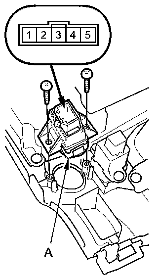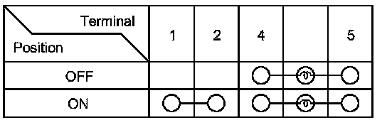4. If the continuity is not as specified, for terminals No. 1 and No. 2, replace the switch (A). If the continuity is not as specified for terminals No. 4 and No. 5, replace the bulb (B).
