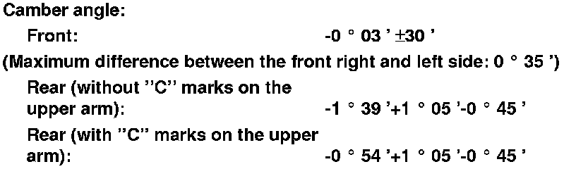 NOTE: There are two types of rear upper arms: those that are marked with " C" (A), and those with no marks. Be sure to use the correct alignment specifications.