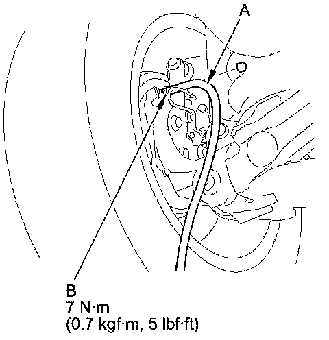 3. Attach a length of drain tube (A) to the bleed screw (B) on the caliper or wheel cylinder.