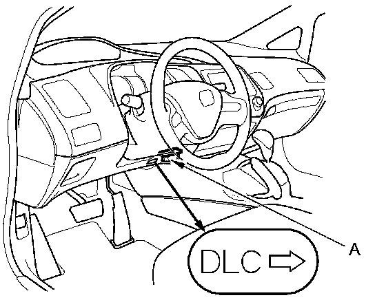 1. With the ignition switch at LOCK (0), connect the HDS to the data link connector (DLC) (A) located under the driver's side of the dashboard.