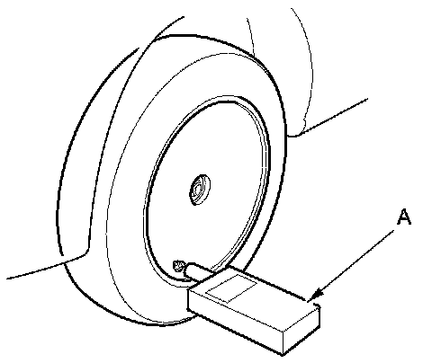 6. Hold the TPMS tool (A) near the valve stem of one wheel, and activate the tire pressure sensor by following the prompts on the HDS.