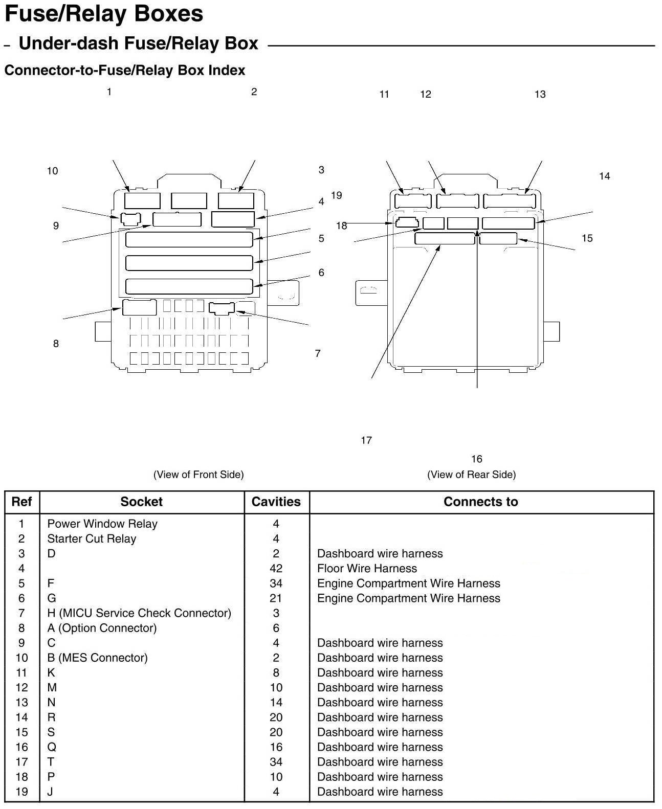 Under-dash Fuse/Relay Box - Connector-to-Fuse/Relay Box Index