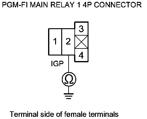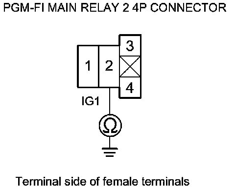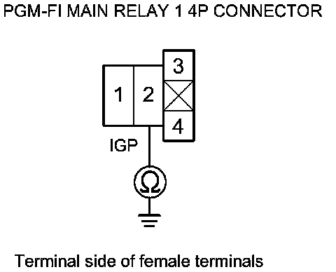 48. Check for continuity between PGM-FI main relay 1 4P connector terminal No. 2 and body ground.