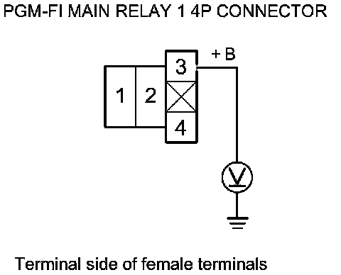 69. Measure the voltage between PGM-FI main relay 1 4P connector terminal No. 1 and body ground.