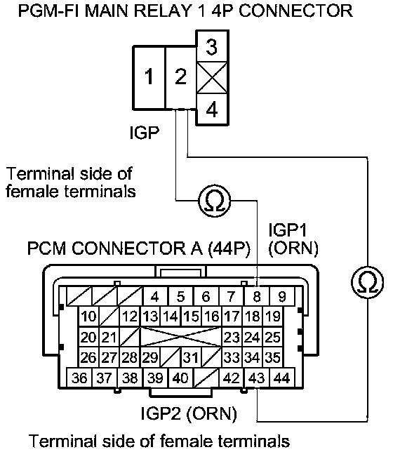 Repair open in the wire between the PCM (A8,A43) and PGM-FI main relay 1.�