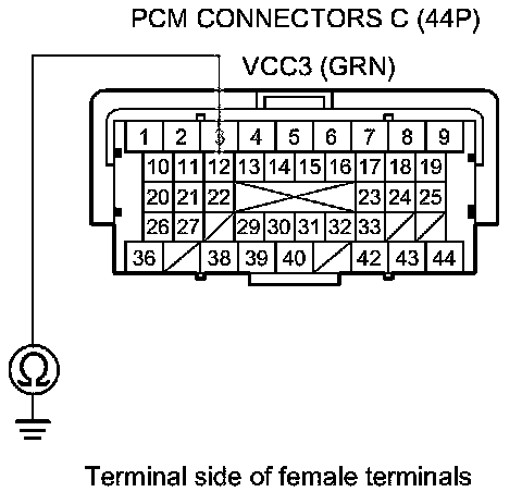 78. Check for continuity between PCM connector terminal C12 and body ground.