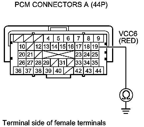 62. Measure the voltage between PCM connector terminal A6 and body ground.