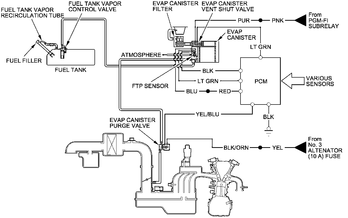 The EVAP controls minimize the amount of fuel vapor escaping to the atmosphere. Vapor from the fuel tank is temporarily stored in the EVAP canister until it can be purged from the canister into the engine and burned.