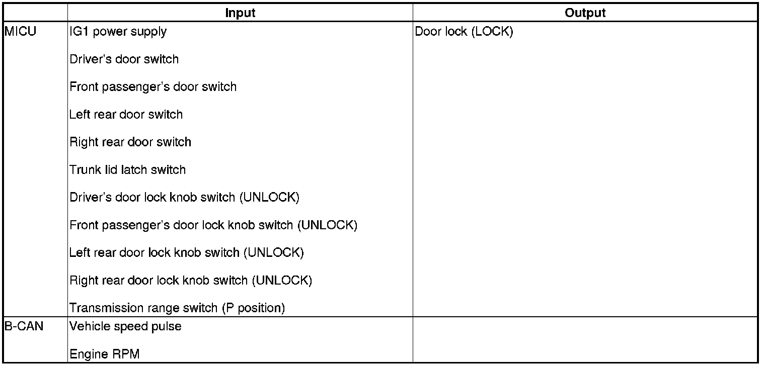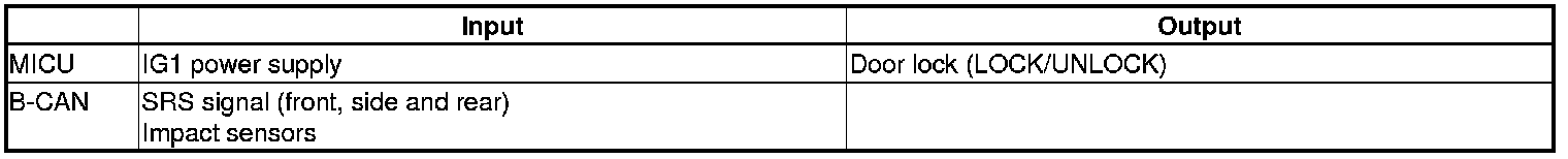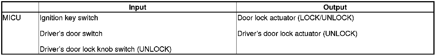The MICU control of the door lock actuators is based on the B-CAN signals and inputs from each switch.