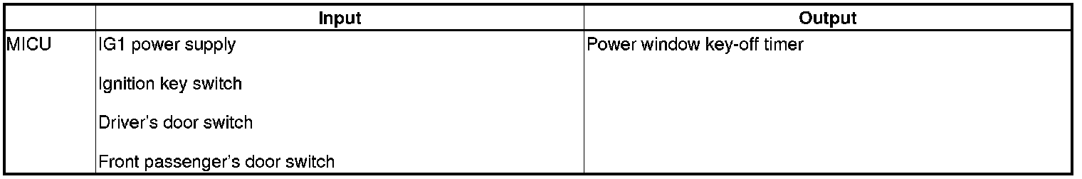 The MICU control of the power windows key-off operation is based on inputs from each switch.