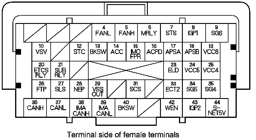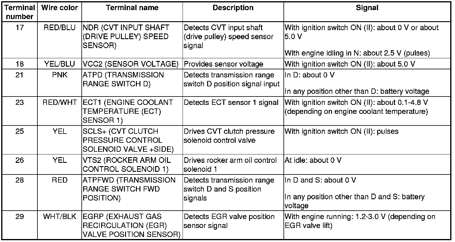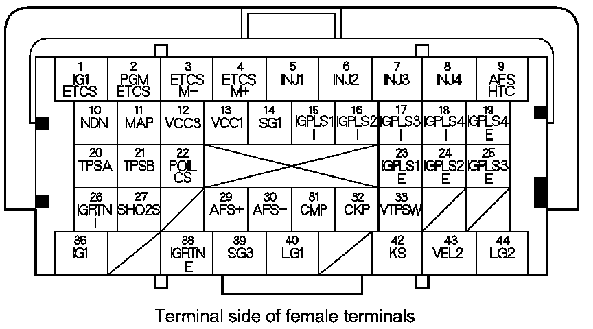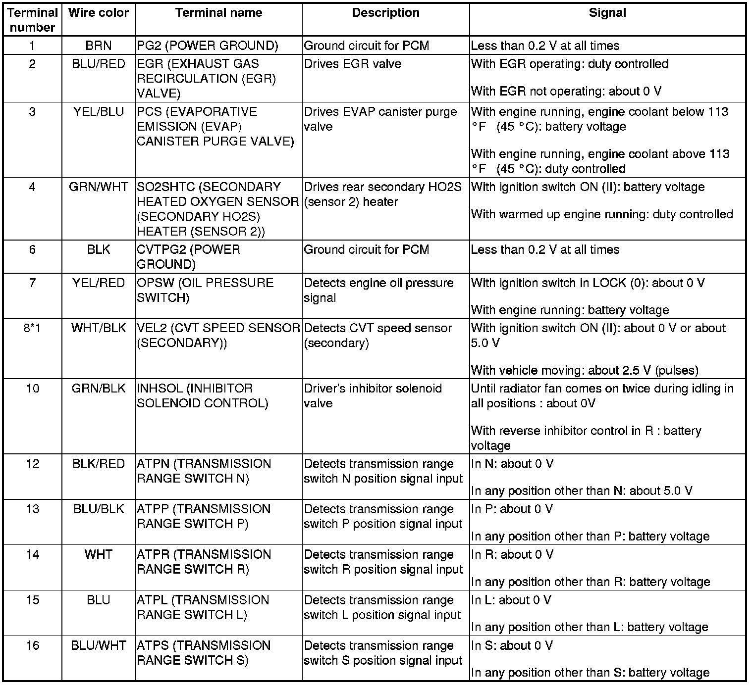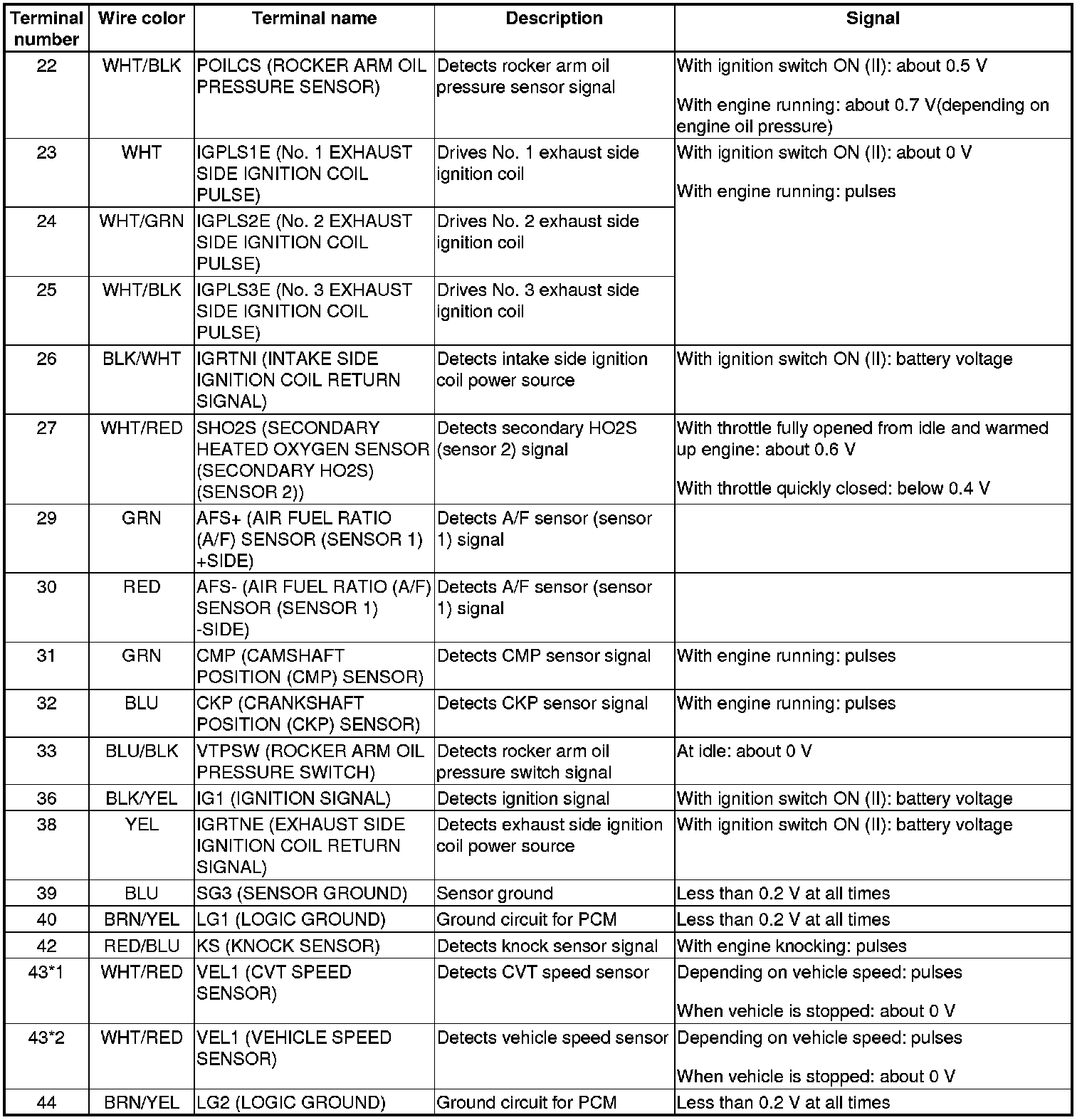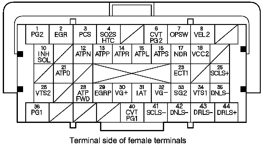 PCM Inputs and Outputs at PCM Connector A (square) (44P)