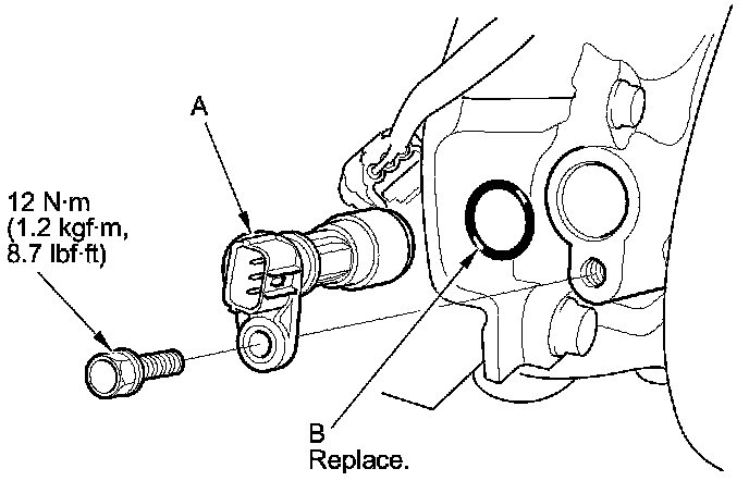 Install the parts in the reverse order of removal with a new O-ring (B).