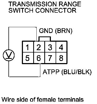 25. Measure the voltage between transmission range switch connector terminals No. 2 and No. 6.