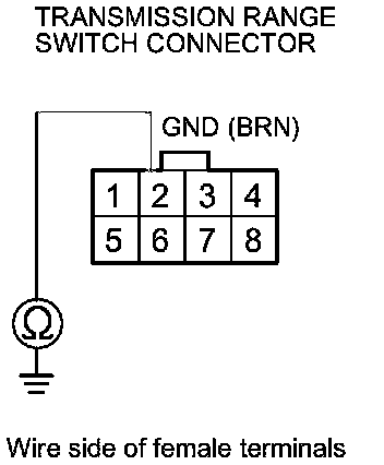 32. Check for continuity between transmission range switch connector terminal No. 2 and body ground.