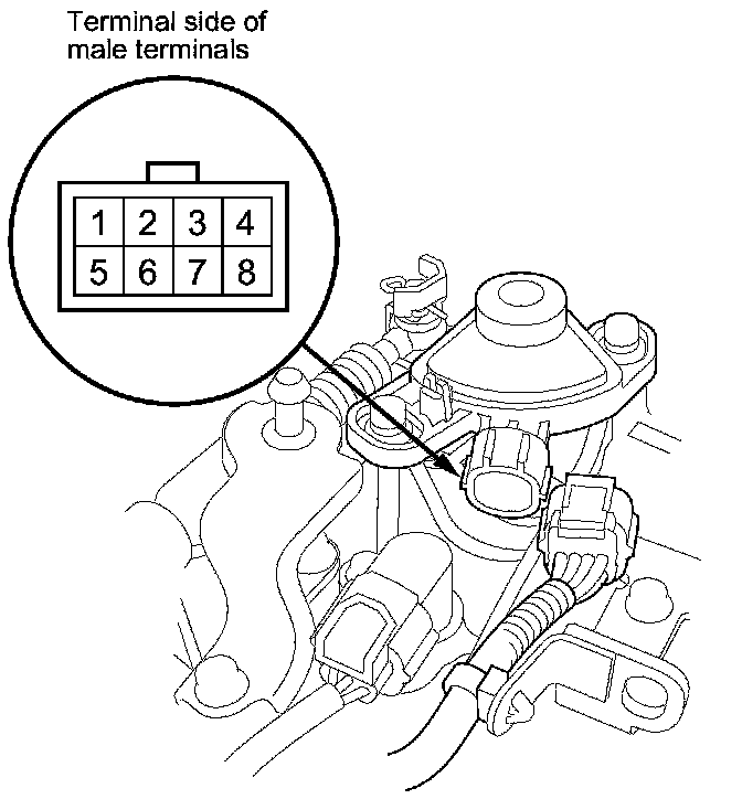 3. Check for continuity between terminals at the transmission range switch connector. There should be continuity between the terminals in the following table for each switch position.