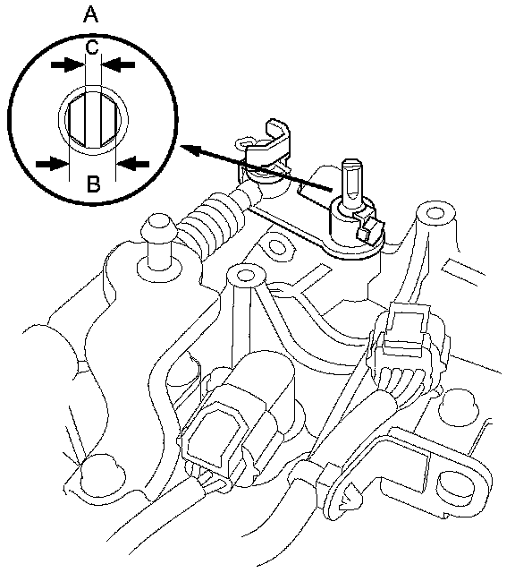 5. Remove the transmission range switch, and check the end of the selector control shaft (A).