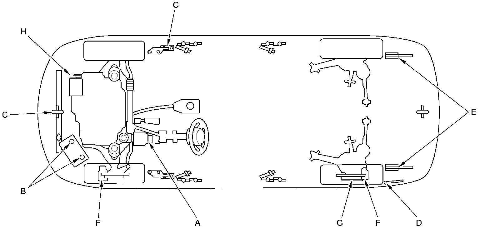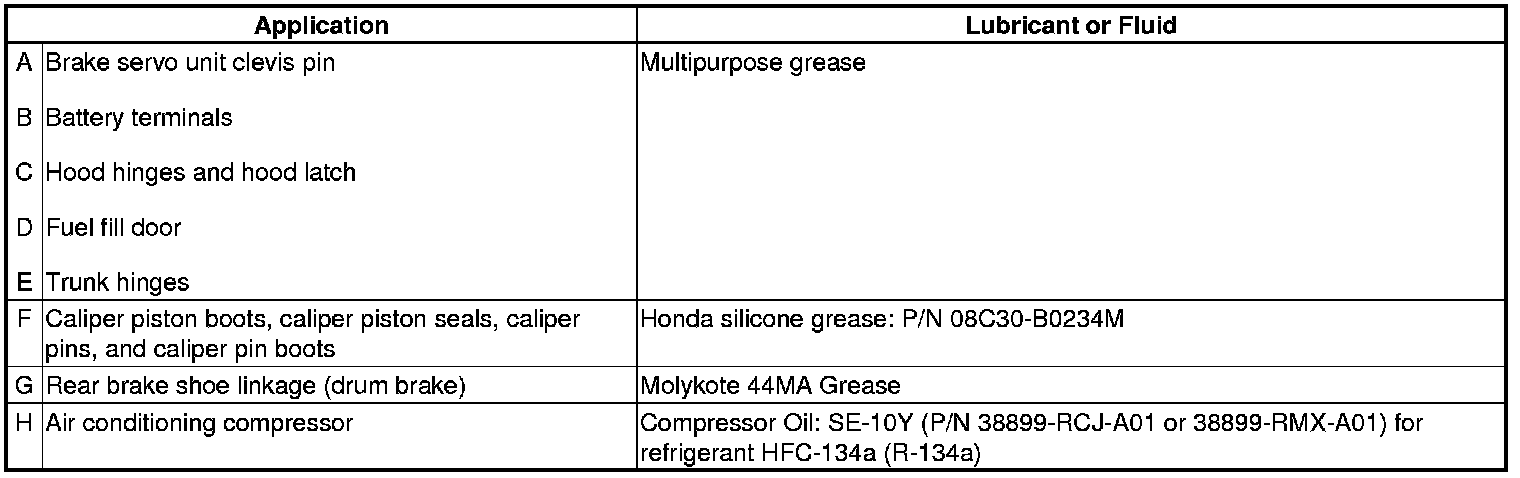 - Lubricate the following areas using the recommended lubricants and fluids.