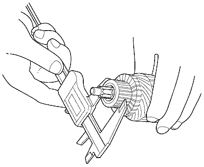 4. Check the commutator diameter with a digital caliper or dial type caliper. If the diameter is below the service limit, replace the armature.