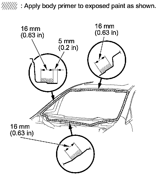 - Do not apply body primer to the windshield, and do not mix up the body and glass primer applicators.