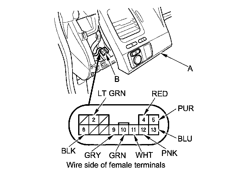 3. 2-door: Disconnect the 13P connector (B) from the power mirror switch.