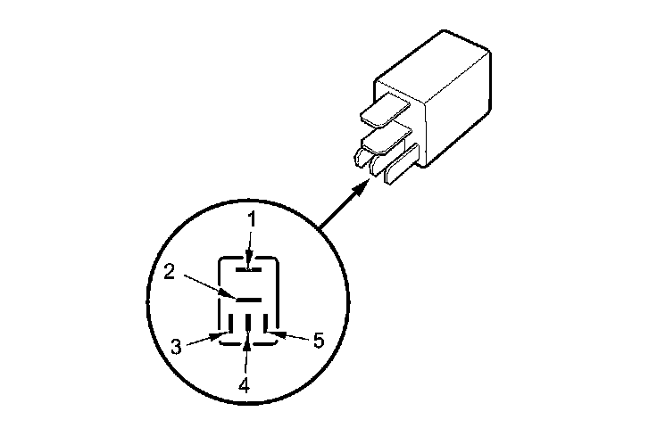 - There should be continuity between terminals No. 1 and No. 2 when the battery power is connected to terminal No. 5, and body ground is connected to terminal No. 3.