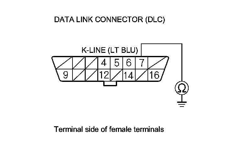 17. Check for continuity between DLC terminal No. 7 and body ground.