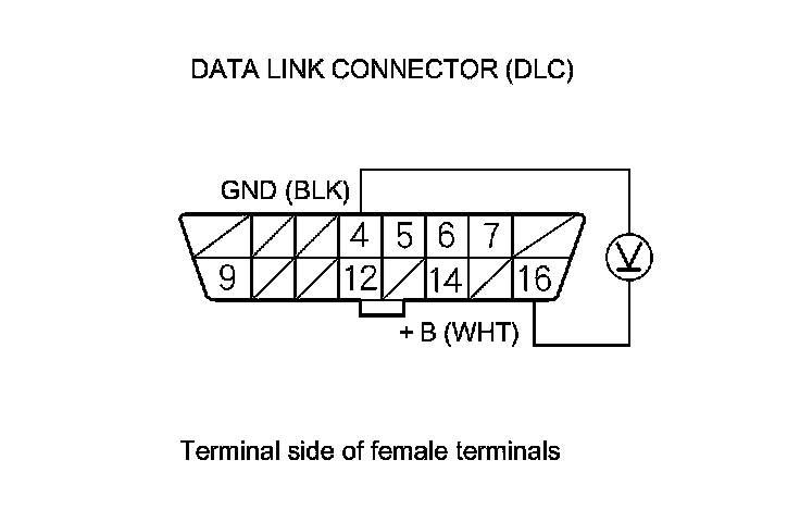25. Measure the voltage between DLC terminal No. 16 and body ground.