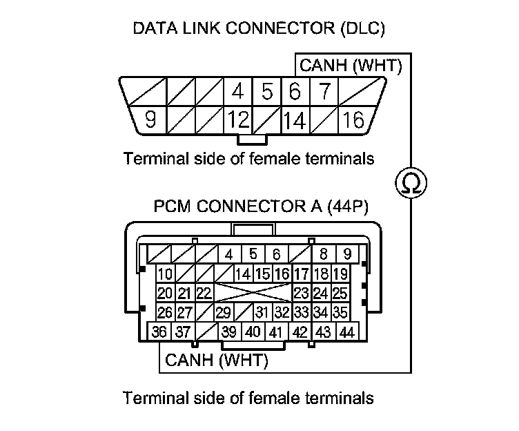 32. Check for continuity between PCM connector terminal A37 and DLC terminal No. 14.