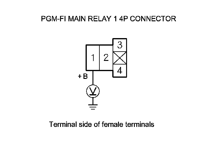 58. Measure the voltage between PGM-FI main relay 1 4P connector terminal No. 3 and body ground.