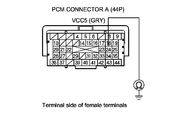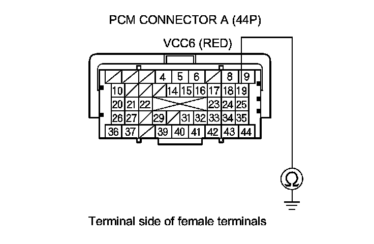 55. Measure the voltage between PCM connector terminal A6 and body ground.
