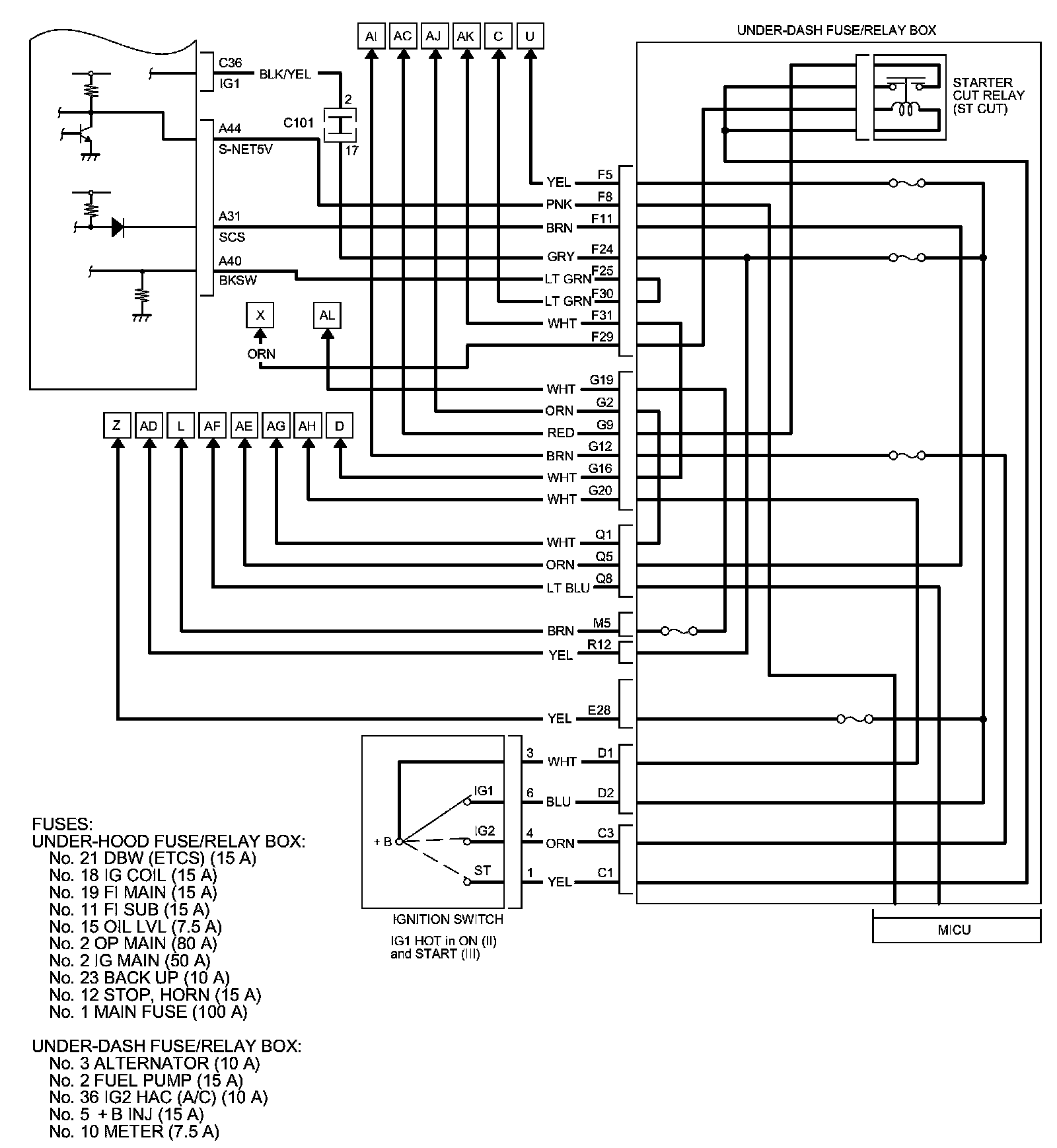 PCM Inputs and Outputs at PCM Connector A (square) (44P)