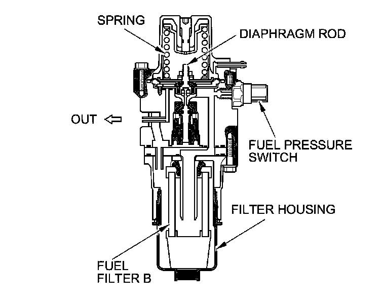 Fuel filter B prevents contamination from getting into the engine. The fuel pressure switch detects abnormal fuel pressure conditions.