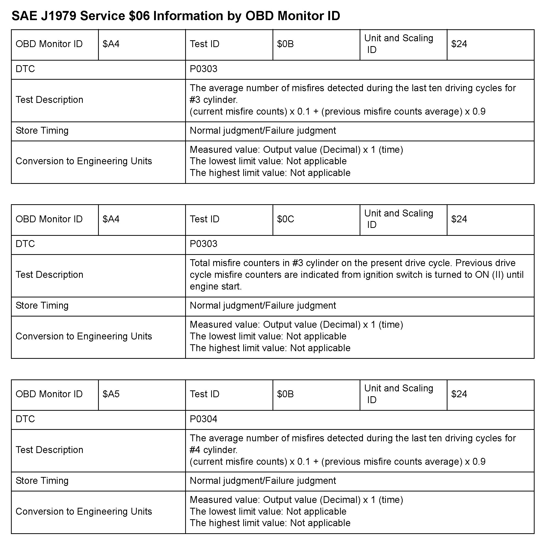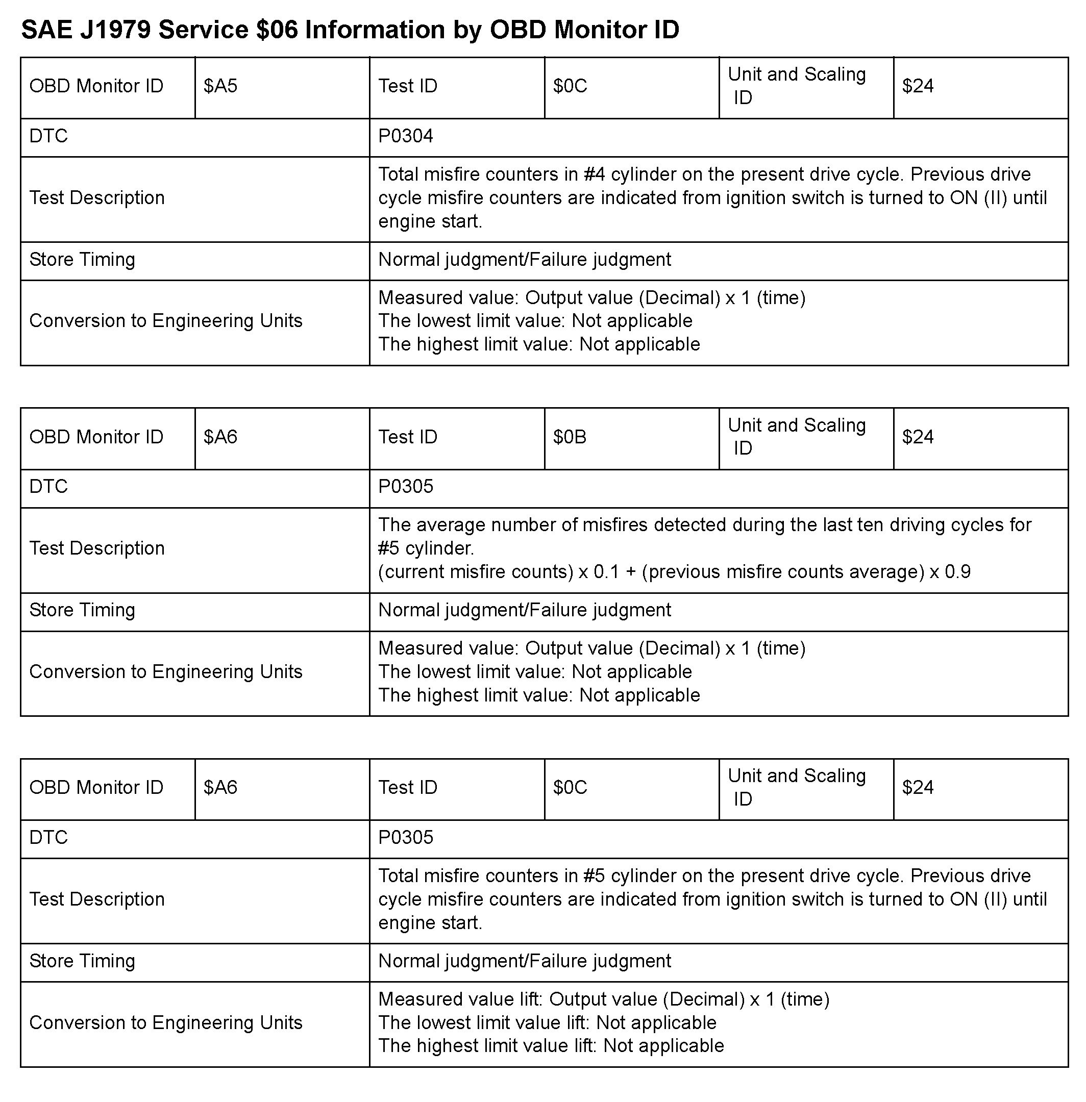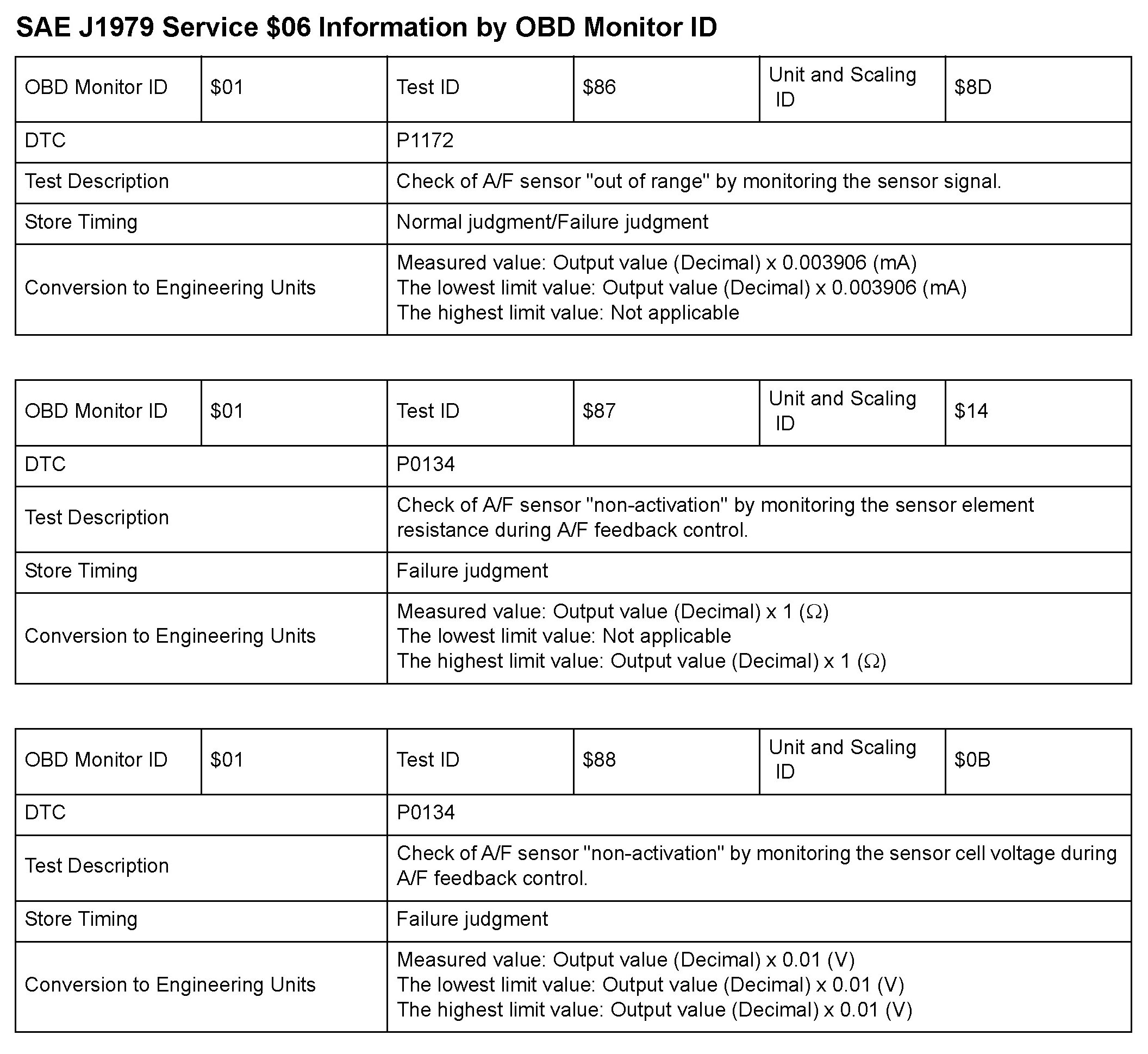 SAE J1979 Mode/Service $06 Test Information: All 2010 Hondas