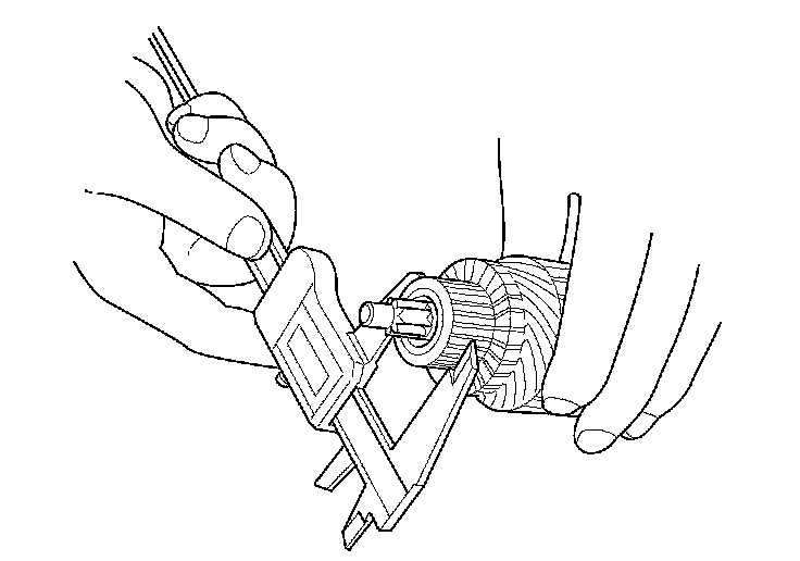 4. Check the commutator diameter with a digital caliper or dial type caliper. If the diameter is below the service limit, replace the armature.