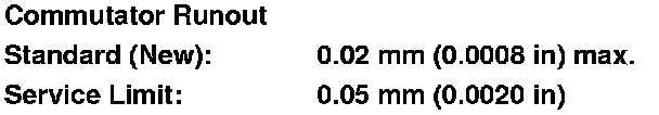 - If the commutator runout is within the service limit, check the commutator for carbon dust or brass chips between the segments.