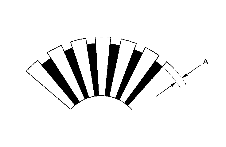 6. Use a digital caliper or dial type caliper to check the mica depth (A). If the mica depth is below the service limit, replace the armature.