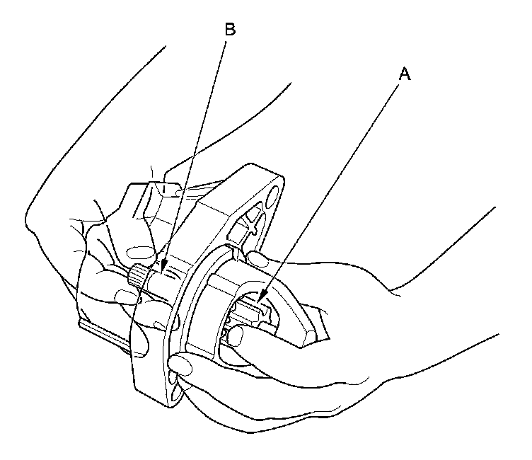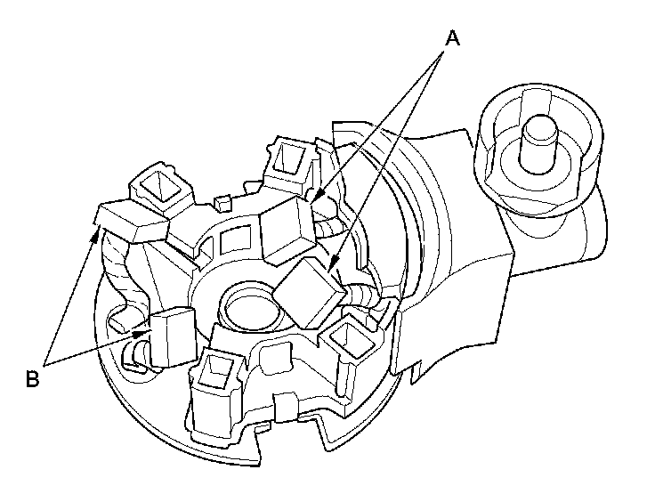 11. Check for continuity between the (+) brushes (A) and the (-) brushes (B). If there is continuity, replace the brush holder assembly.