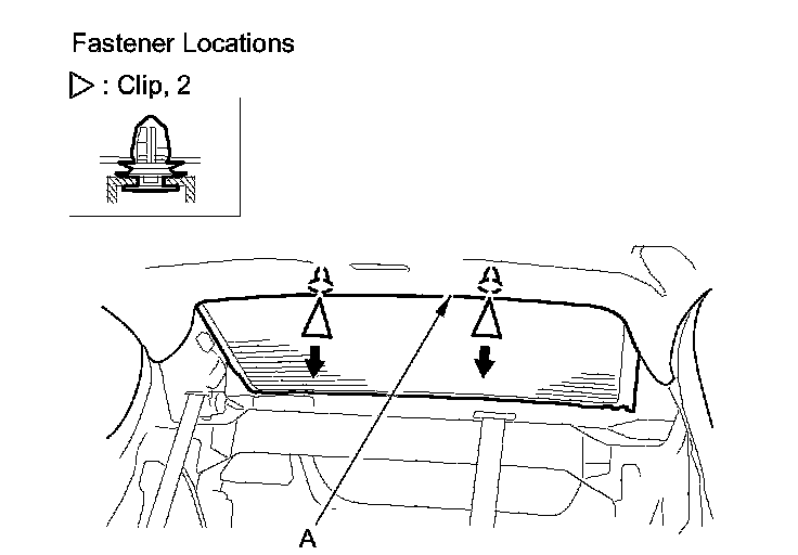 4. Pull down the rear area of the headliner (A) by detaching the clips.