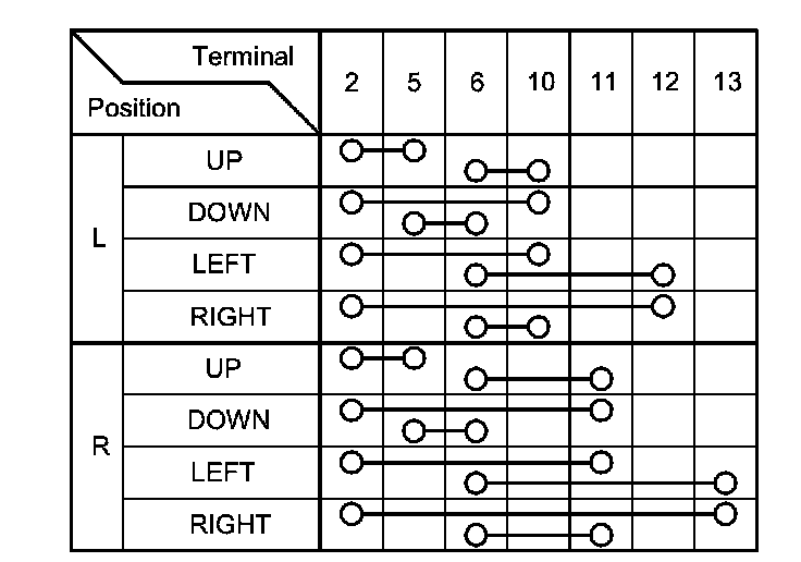 3. Check for continuity between the terminals in each switch position according to the table.