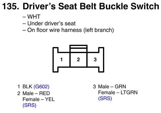 View 135 - Driver's Seat Belt Buckle Switch Connector View