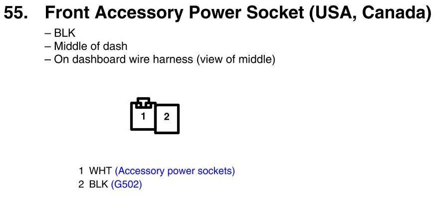 View 55 - Accessory Power Socket, Front Connector View (USA, Canada)