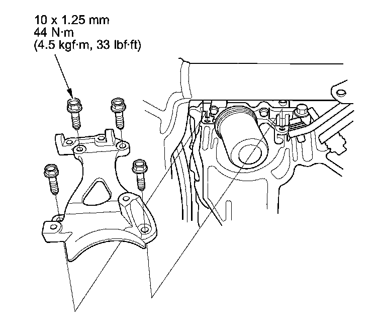 9. Install the lower torque rod bracket.