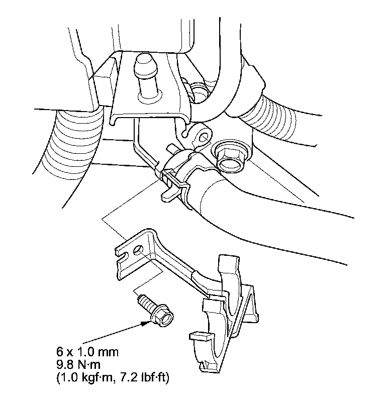 6. Install the heater hose clamp bracket.